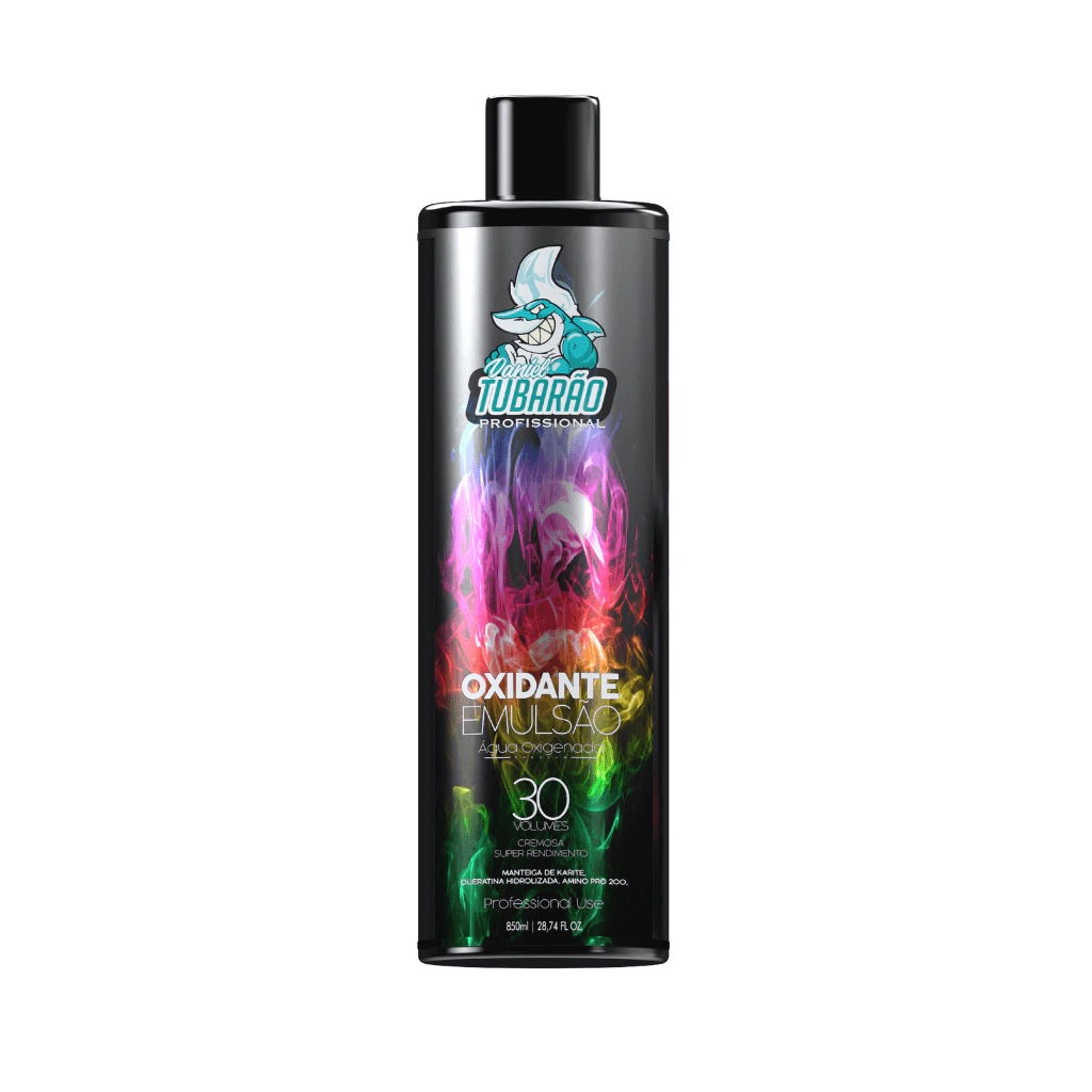 A EMULSÃO OXIDANTE 30 VOLUMES DANIEL TUBARÃO produzida exclusivamente para uso profissional. É perfeita para colorir e descolorir os fios, preserva a parte lipídica dos fios e couro cabeludo. Cabelos mais íntegros e saudáveis, ainda auxilia na hidratação e nutrição dos fios. Com incrível domínio sobre os átomos de oxigênio garante sempre a quantidade necessária para oxidação e clareamento perfeito dos fios. Possui cremosidade e textura que facilitam a aplicação e contam também com agentes estabilizadores, que conservam a concentração de volume da emulsão, garantindo assim um resultado seguro na aplicação com alto rendimento. Possui em sua Composição MANTEIGA DE KARITE reconhecida por suas propriedades nutritivas e hidratantes, ela proporciona uma intensa nutrição aos fios, garantindo que permaneçam saudáveis e resistentes durante o processo químico. Também contém em sua fórmula a QUERATINA HIDROLIZADA e AMINO PRO 200, dois ativos poderosos que contribuem para a restauração e reconstrução da fibra capilar. A queratina hidrolisada penetra nos fios, preenchendo as áreas danificadas e fortalecendo sua estrutura interna. Já o Amino Pro 200 é responsável por reforçar a resistência dos cabelos, evitando a quebra e mantendo-os protegidos mesmo durante o processo químico. Benefícios: Coloração ou descoloração preservando a parte lipídica dos fios e do couro cabeludo, tratando e nutrindo os cabelos durante o procedimento químico.